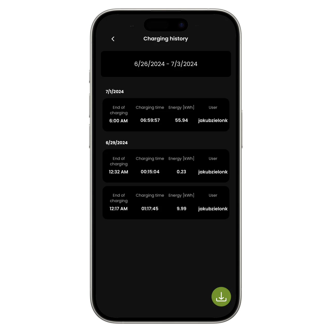 Sie können jeden Ladevorgang einsehen und analysieren: wie viel Strom wurde verbraucht, wie lange wurde das Auto geladen und wer hat den Vorgang genehmigt. Sie können den Ladeverlauf im CSV Format herunterladen.