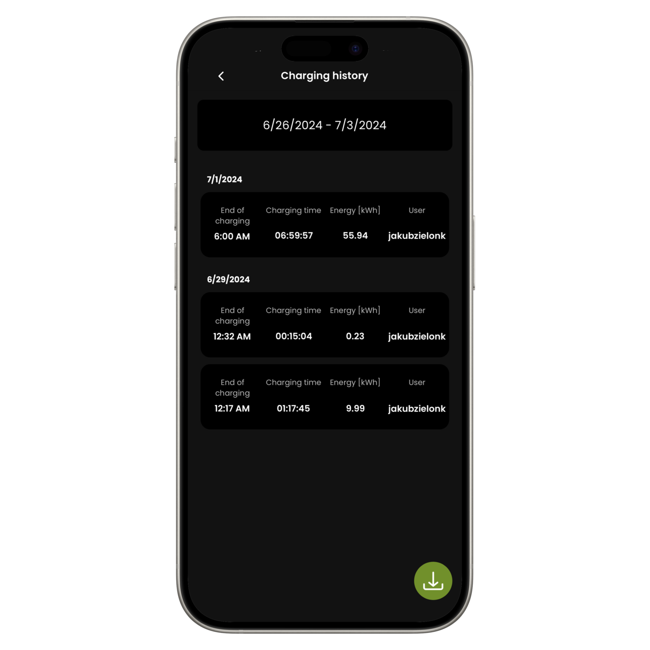 Depuis l'application, vous pouvez consulter les informations les plus importantes sur vos sessions de recharge afin de connaître les tarifs exacts de la recharge du mois dernier ou de tenir compte de la recharge des invités.L'historique de recharges n'est disponible que sur les appareils connectés en permanence à un réseau WiFi.