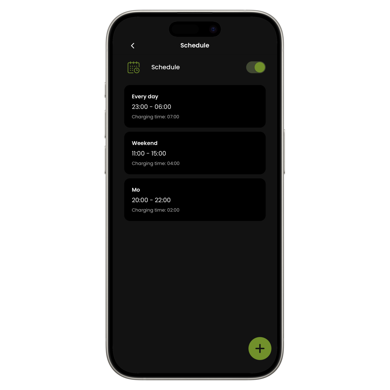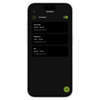Rechargez votre voiture selon un horaire fixe, par exemple lorsque le tarif est plus avantageux ou lorsque les panneaux photovoltaïques produisent de l'énergie. Fixez un moment qui vous convient : un jour ou même une heure.