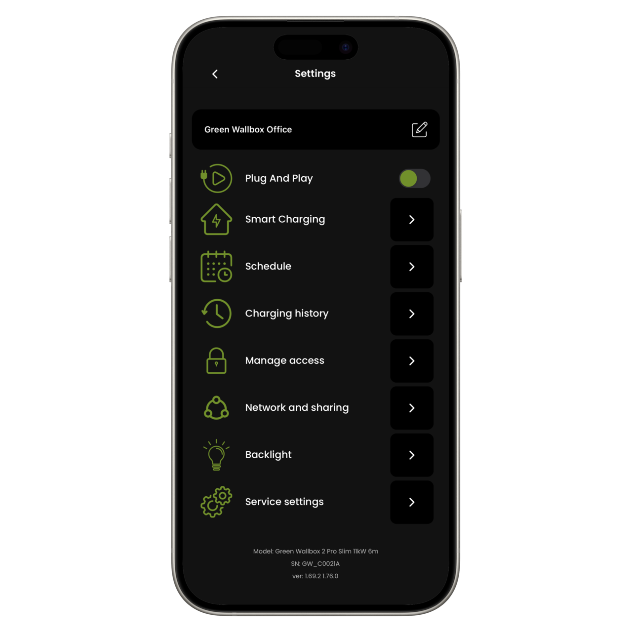Green Wallbox 2 Pro est un appareil en constante évolution. Vous bénéficierez de nouvelles fonctionnalités grâce à la possibilité de mise à jour à distance (via WiFi et Bluetooth).